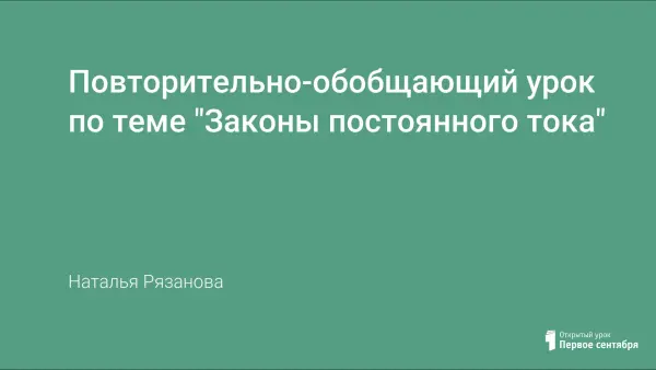 Урок повторения и обобщения знаний по теме «Законы постоянного тока» и закрепления при решении качественных, количественных и экспериментальных задач. На уроке сочетается коллективная деятельность учащихся с самостоятельной.