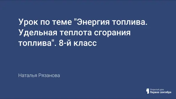 Цели урока: сформировать понятие об энергии топлива; рассмотреть физические основы горения веществ; обеспечить понимание учащимися физической сути удельной теплоты сгорания топлива.