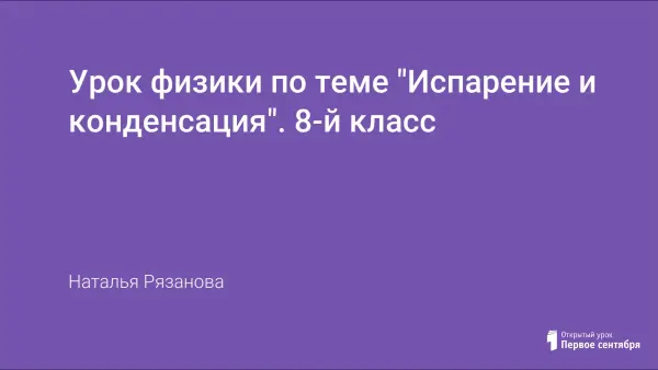 Урок усвоения новых знаний, объясняющий явление испарения и конденсации. На уроке экспериментально выясняются условия, от которых зависят эти процессы.
