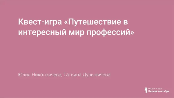 Квест-игра «Путешествие в интересный мир профессий»