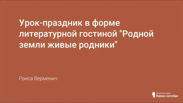 Урок-праздник в форме литературной гостиной - результат разносторонней межпредметной и внеклассной работы учащихся и учителя по изучению своего родного края посредством знакомства с краеведческими материалами, литературными произведениями клинских поэтов и прозаиков, экскурсий, встреч со старожилами малой родины, творческих работ и конкурсов.