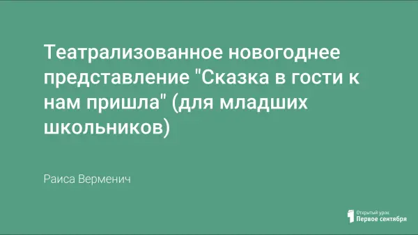 В статье представлен Новогодний праздник в виде театрализованного представления, в котором активное участие принимают все учащиеся класса без исключения. При проведении утренника использованы яркие театральные костюмы и декорации, в изготовлении которых принимали активное участие родители учащихся. Театрализованное представление дало возможность раскрыть как талантливых детей, так и дать возможность стеснительным и робким преодолеть барьер закомплексованности.