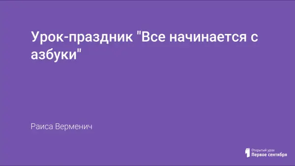 Праздничный урок – театрализованное представление для учащихся 1-го класса с участием пятиклассников проводится после изучения первой книги – Азбуки. Утренник сплачивает коллектив единомышленников: учитель – ученики – старшеклассники – родители, раскрывает потенциал и возможности каждого ребенка, помогает ему преодолеть робость, застенчивость и неуверенность в себе.