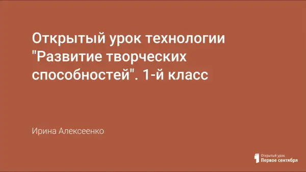 Открытый урок по технологии в 1-м классе создает условия для развития творческих способностей учащихся. Урок построен на междисциплинарной, интегрированной основе, способствует развитию психических свойств личности: памяти, внимания, воображения, мышления. Создаёт положительный эмоциональный фон на уроке.