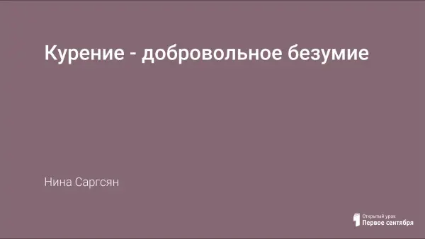 Урок раскрывает проблемы, связанные с отрицательным воздействием курения на организм человека.