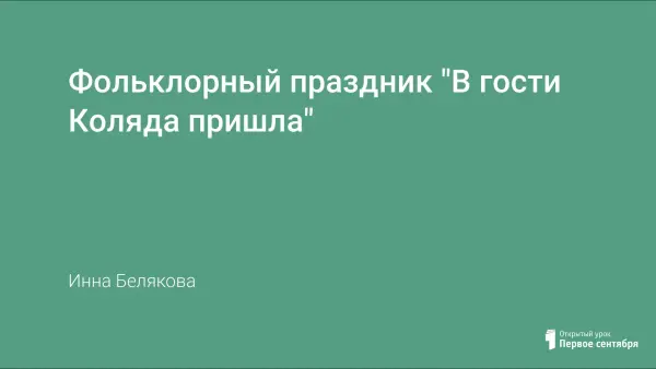 В основу сценария фольклорного праздника легли старинные обряды и обычаи. В качестве музыкального материала были использованы старинные народные колядки, которые исполнялись девочками и мальчиками младшей вокальной группы accopella с использованием народных шумовых инструментов. Девочки средней вокальной группы исполняли стилизованные народные песни, сочетая пение с танцевальными народными движениями.
