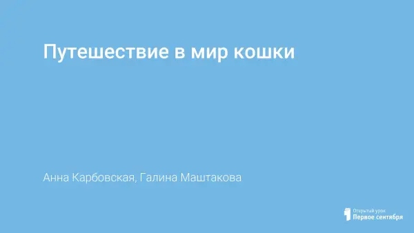 Данное мероприятие проводится в большой аудитории для учащихся 7–8-х классов, в рамках предметной неделе естественно-научного цикла. Основная задача – обнаружить известные физические и биологические явления, объекты и закономерности в поведении кошек и тем самым углубить, расширить знания по физике и биологии;