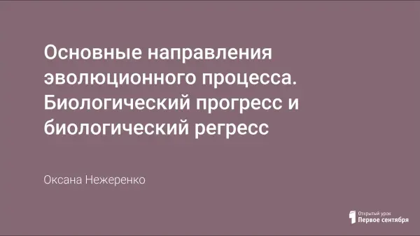 Урок позволяет сформировать у учащихся знания о главных путях и направлениях эволюционного процесса, сформировать умения правильно сравнивать различные направления и пути эволюции, иллюстрировать рассказ о них разнообразными примерами из мира растений и животных; систематизировать и обобщить знания о процессе и основных итогах исторического развития органического мира.