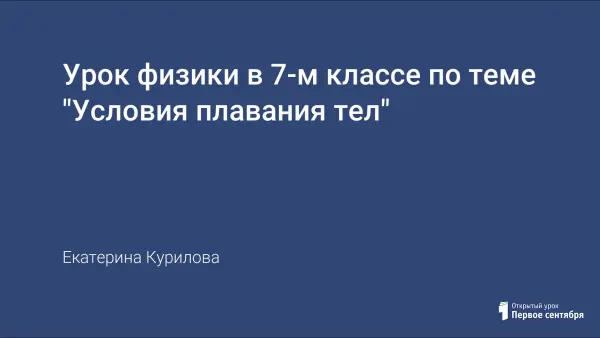 Представлен урок по физике в 7-м классе на тему "Условия плавания тел", построенный с опорой на принцип цикличности "факты - модель - следствия - эксперимент".