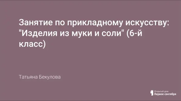 Урок знакомит учащихся с народным творчеством - игрушкой из соленого теста. Дети приобретают навыки при работе с соленым тестом, формируют интерес к декоративно-прикладному искусству.