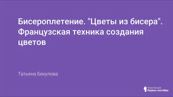 Цель занятия - обучение бисероплетению учащихся, развитие воображения и навыков творческой деятельности. Занятие можно использовать как на уроке по технологии, так и на кружковом занятии по бисероплетению.