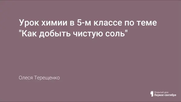 Урок химии в 5-м классе по теме "Как добыть чистую соль"