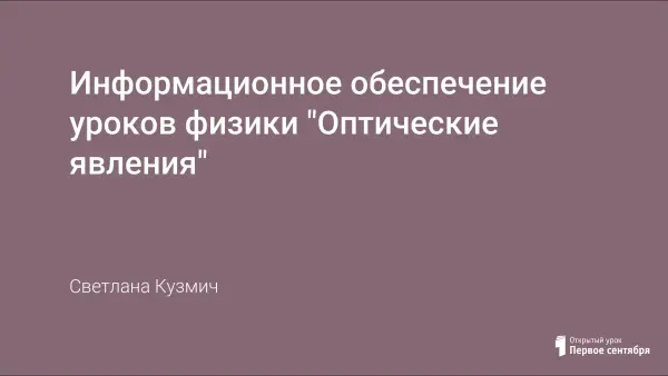 Разработка представляет собой информационное обеспечение темы «Оптические явления» с применением компьютерных средств и технологий на уроках физики. Она предполагает использование компьютерных программ и созданной презентации на различных уроках (урок-объяснение нового материала, урок-исследование, урок - компьютерная лабораторная работа, урок-закрепление знаний).