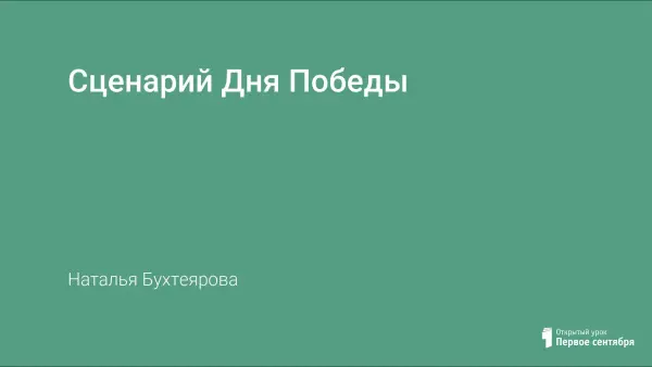Литературно-музыкальная композиция посвящена тем, кто приблизил для нас светлый праздник Победы в Великой Отечественной войне 1941–1945 гг. Мероприятие формирует у детей представления о вкладе русского народа в Победу, приобщает к истории своего города, страны, развивает патриотизм и чувство гордости за народ.