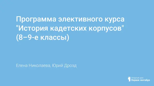 Программа элективного курса "История кадетских корпусов" (8–9-е классы)