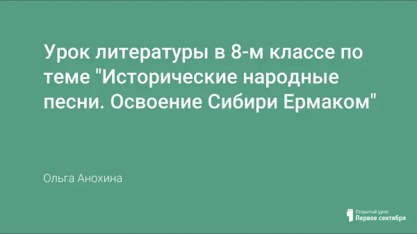 Цель урока: раскрыть своеобразие исторических песен на примере произведений о Ермаке; способствовать желанию учащихся изучать историю своего родного края; продолжить знакомство обучающихся с лучшими полотнами русских живописцев.