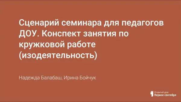 Сценарий семинара для педагогов ДОУ. Конспект занятия по кружковой работе (изодеятельность)