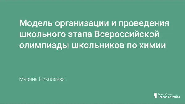 В статье представлена информация по организации и подготовке школьного этапа Всероссийской олимпиады школьников по химии на примере олимпиады для 8-го класса: план основных мероприятий по подготовке олимпиады, регламент проведения олимпиады, подготовка содержательной компоненты олимпиады. Содержательная компонента олимпиады включает комплекты задач для заочного и очного (теоретического и практического) туров школьного этапа олимпиады.