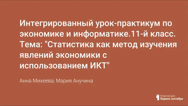 Интегрированный урок-практикум по экономике и информатике.11-й класс. Тема: "Статистика как метод изучения явлений экономики с использованием ИКТ"