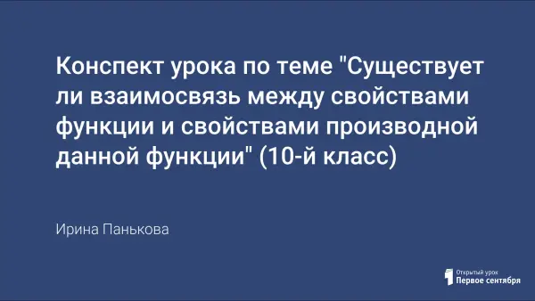 Это вводный урок к теме «Применение производной к исследованию функции». Понятие производной уже дано, правила ее нахождения отработаны, применение в физике и ее геометрический смысл разобраны. Необходимо отработать понимание того, что производная некоторой функции есть тоже функция, а стало быть, обладает своими свойствами и графиком.