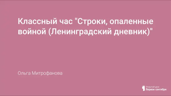 Классный час, показывающий войну как личностно значимое для нашего современника событие. Задача классного часа – способствовать развитию патриотических чувств учащихся: сопричастности истории страны, уважения к ветеранам Великой Отечественной войны.