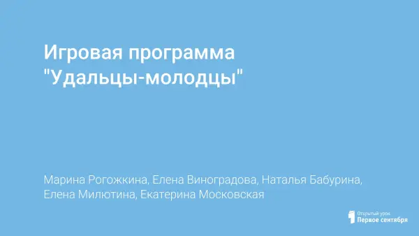 Игровая программа для детей 6–7 лет, посвященная Дню защитника Отечества, может быть использована в учреждениях дополнительного образования и в детских образовательных учреждениях. Цель программы – нравственное и патриотическое воспитание подрастающего поколения игрой. Для успешного проведения программы стоит заранее познакомить детей с русскими былинами, героями былин – могучими богатырями, картинами русских художников, музыкой.