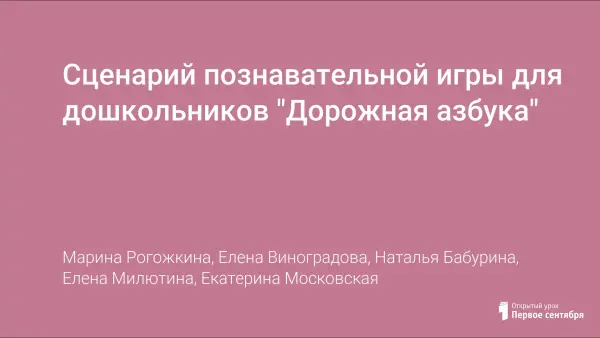 Предлагается сценарий проведения познавательной игры для дошкольников «Дорожная азбука». Цель игры – помочь детям понять «дорожную азбуку», помочь сформировать основы безопасного поведения на дорогах, культуру поведения в общественном транспорте. Для проведения игры используется дидактический набор «Дорожная азбука», в который входят уменьшенные копии дорожных знаков, макеты светофоров, пешеходных переходов, жилетки с изображением различных видов транспорта, автомобильные рули и т.д.