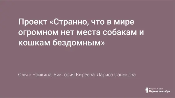 Проект «Странно, что в мире огромном нет места собакам и кошкам бездомным»