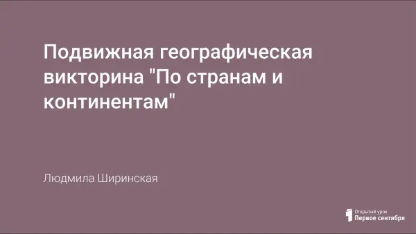 Данная работа может быть использована как внеклассное мероприятие или обобщение и систематизация изученного материала по курсу «География материков и океанов». Способствует расширению кругозора участников викторины, привитию интереса к изучаемому предмету (географии). Викторина проводится на открытом воздухе либо в вестибюле школы.