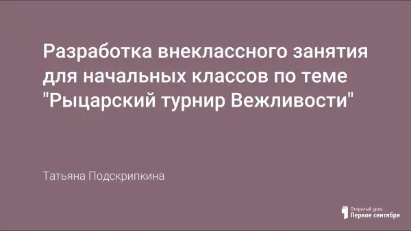 Внеклассное мероприятие для начальных классов. В занимательной форме дети знакомятся с понятием "рыцарь". Цель этого мероприятия заключается в том, чтобы обобщить и закрепить знания этикетных норм в практической деятельности. Воспитывать галантность и вежливость. Поэтому доспехи участников - вежливость и любезность, внимание и доброжелательность. Турнир проводится в форме КВН.