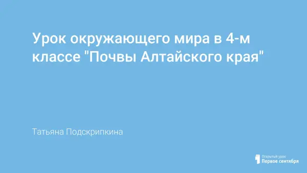 Цель данной разработки урока в том, чтобы восстановить и расширить знания о почве: о ее составе, свойстве, образовании; дать представление об основных типах почв на Алтае; о взаимосвязи почвы и круговороте веществ; показать необходимость охраны почв.