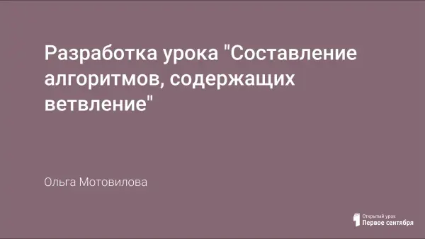 В статье представлена разработка урока по теме «Ветвление». В начале урока ставится проблема, затем она решается совместно ребятами и учителем. Разработка сопровождается тестами для проверки домашнего задания и презентацией с анимированными блок-схемами.