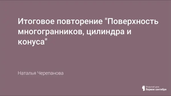 Заключительное повторение проводится в конце учебного года или после прохождения всего курса геометрии. Занятие проводится как семинарское по обобщению и систематизации знаний учащихся при нахождении площади поверхностей.
