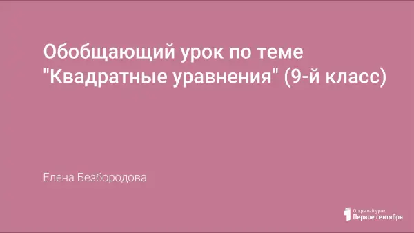 Данная разработка урока может быть использована для подготовки обучающихся 9-х классов к ЕГЭ. Основная цель урока - обобщение знаний по решению квадратных уравнений и уравнений, приводимых к квадратичным. Главный этап урока - самостоятельная работа. На уроке применяется дифференцированное обучение.