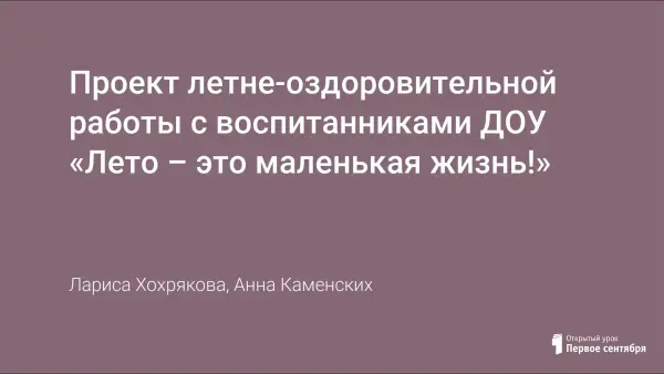 Проект летне-оздоровительной работы с воспитанниками ДОУ «Лето – это маленькая жизнь!»
