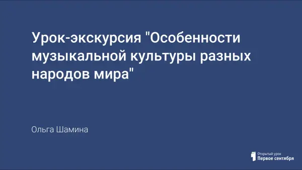 Урок направлен на закрепление знаний учащихся о музыке разных стран и народов. Занятие проводится в форме урока-экскурсии. Учитель формирует познавательный интерес к музыке других народов в процессе виртуальной экскурсии в презентации, расширяет знания учащихся о культуре народов мира и закрепляет материал с помощью игры «Угадай мелодию» и теста «Исправь ошибки».