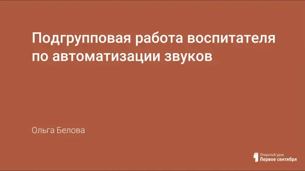 Важнейшим фактором детского речевого развития является согласованная деятельность педагогов и специалистов дошкольного учреждения. В условиях логопункта закрепление поставленного логопедом звука воспитатель проводит на индивидуальных и подгрупповых занятиях, в играх, речевых упражнениях. В статье представлен план подгруппового занятия воспитателя с детьми по автоматизации звука [С].