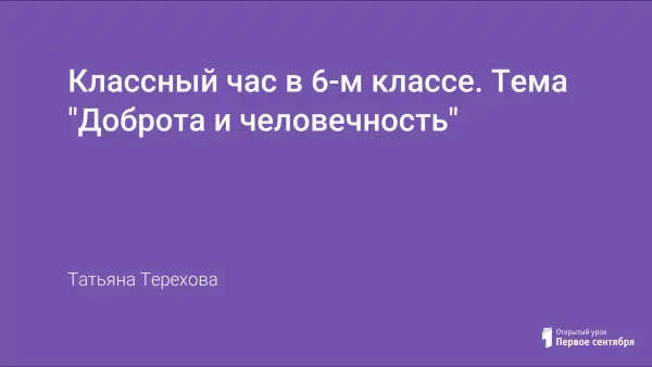 Цель урока: осознание понятий "доброта" и "человечность"; воспитание добрых чувств к людям, к родителям, к родным, ко всему живому на земле, развитие стремления к самопознанию и самовоспитанию.