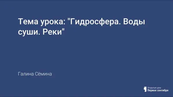 Целью урока ставится формирование понятий "река", "русло", "исток" и т.д. Учащиеся учатся описывать строение рек, определять речные системы.