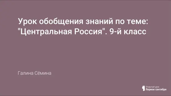 Урок помогает обобщить и закрепить знания об экономических районах Центральной России; определить общие черты и специфические признаки экономических районов.