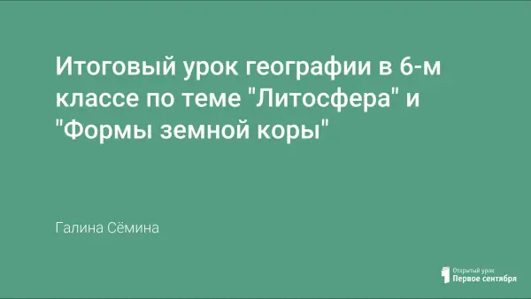 Итоговый урок по темам «Литосфера» и «Формы рельефа земной коры» проходит в нетрадиционной форме – в виде игры. Данный метод позволяет определить уровень знаний и умений детей по темам; повысить интерес к предмету; развивает навык работы в команде; воспитывает дружелюбные отношения между учащимися класса.