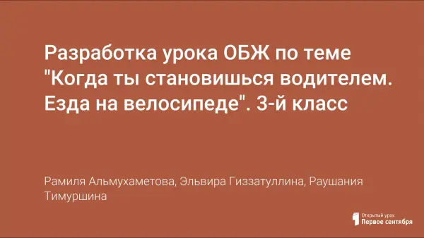 Все, что предлагается детям как предмет изучения на данном уроке, интерпретируется с позиций значимости для жизни человека. Знакомство с основными правилами безопасности езды на велосипеде, с основными требованиями, предъявляемыми ПДД к велосипедистам актуально, так как именно в этом возрасте учащиеся, не зная правил дорожного движения, катаются на велосипеде по проезжей части и являются нарушителями ПДД.