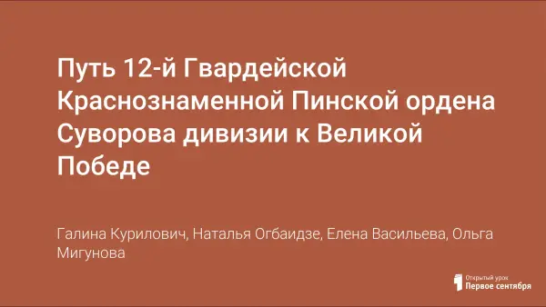 Легендарная дивизия прошла путь от Москвы до Берлина, в послевоенные годы ветераны дивизии дружны, стараются общаться. Их родные ведут поисковую работу, организуют встречи и праздники. Урок продуман так, чтобы ученики смогли понять: история войны и жизнь ветеранов – это не сказка, не забытая история. И сегодня жив дух ветеранов, растет надежная смена патриотов, чтящих историю и традиции своей державы.