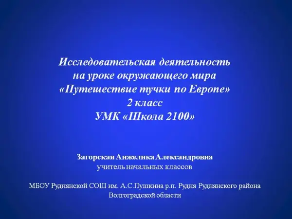 Исследовательская деятельность на уроке окружающего мира "Путешествие тучки по Европе". 2-й класс