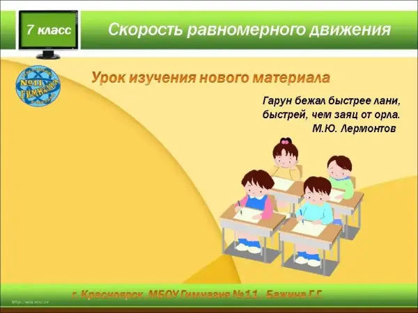 Тема урока "Скорость равномерного прямолинейного движения". 7-й класс