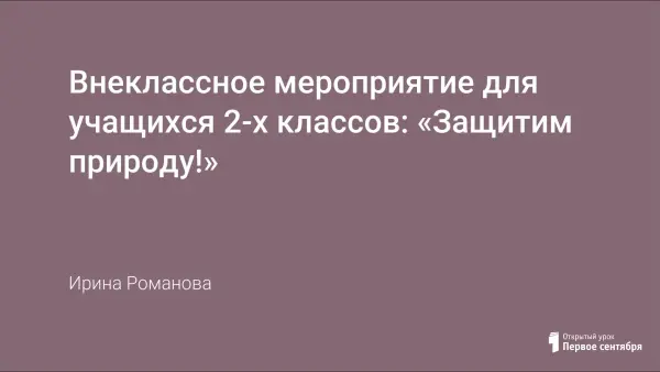 Цель занятия: расширить знания об окружающей среде, о влияние человека на природу, формировать правильное отношение к природе и экологическую культуру.