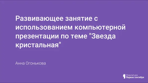 Развивающее занятие с использованием компьютерной презентации «Звезда кристальная»рассчитано на детей начальной школы коррекционного учреждения 7–8 вида. Может быть проведено воспитателем (внеклассное мероприятие, час общения)и учителем начальной школы (урок труда).