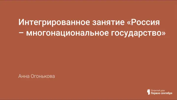 Интегрированное занятие «Россия – многонациональное государство» (предметы окружающий мир, музыка, рисование) рассчитано на детей начальной школы, а также на детей с ограниченными возможностями здоровья. Цель занятия: формирование толерантного отношения между детьми и закрепление представлений о России как многонациональной стране, знакомство с приёмами нетрадиционной техники рисования. Занятие может быть использовано воспитателями и учителями начальной школы.