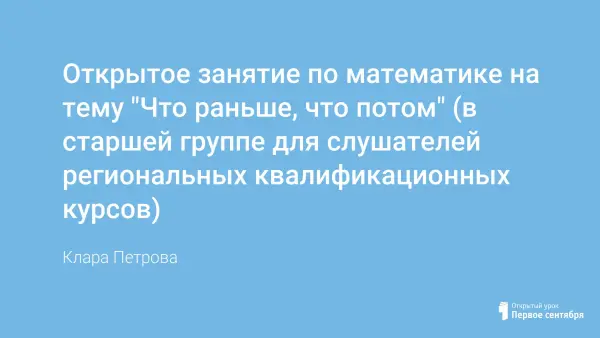 Учитель расширяет временные представления у детей, уточняет отношения "раньше – позже"; закрепляет представления о сравнении совокупностей предметов с помощью составления пар, умения правильно выбирать знак <, > или =; тренирует деятельную способность в присчитывании и отсчитывании единиц на числовом отрезке; устанавливает связь между числом предметов и цифрой, правильную последовательность чисел в числовом ряду.