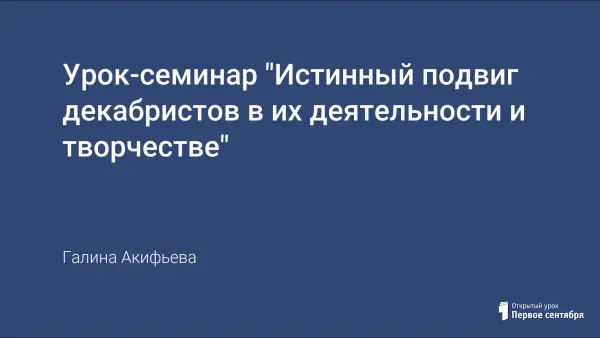 Межпредметный семинар комплексно показывает роль декабристов в развитии русской культуры сквозь призму исторических реалий и литературных произведений. Анализ литературного творчества декабристов воплотит учебно-познавательные, эвристические умения и навыки, коммуникативные, творческие способности учащихся.